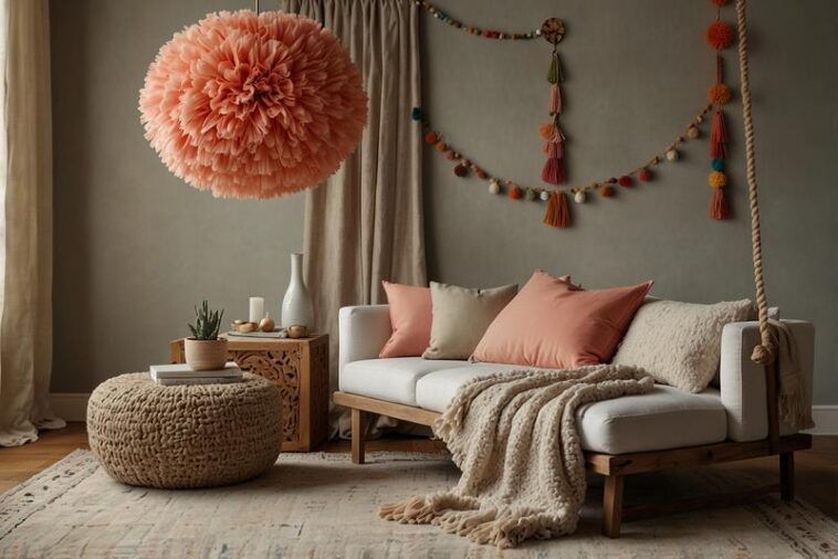 Eine DIY-Girlande aus bunten Pom-Poms verleiht jedem Wohnraum eine fröhliche und verspielte Atmosphäre. Die farbenfrohen Kugeln aus weichem Garn lassen sich leicht selbst herstellen und in verschiedenen Größen und Farbkombinationen gestalten. Für die Herstellung werden meist Wolle oder Acrylwolle verwendet, die für eine angenehme Haptik sorgen und in zahlreichen Nuancen erhältlich sind. Der Vorteil einer solchen Girlande liegt nicht nur in der individuellen Farbgestaltung, sondern auch in der Möglichkeit, sie flexibel an Wänden, Fenstern oder Regalen zu platzieren. Pom-Poms sind zudem besonders beliebt, da sie Textilien eine lebendige Struktur und ein verspieltes Element hinzufügen. Neben der rein dekorativen Funktion kann die Girlande auch als Raumteiler oder Tischdekoration eingesetzt werden. Für das Zusammenfügen werden oft Schnüre oder Bänder genutzt, die die Kugeln miteinander verbinden und ein schwebendes Gesamtbild erzeugen. Dieses kreative Projekt bringt nicht nur Farbe ins Zuhause, sondern auch sorgt für eine gemütliche und persönliche Atmosphäre. Besonders in Kombination mit Naturmaterialien wie Holz oder Leinen entsteht ein ansprechender Kontrast, der die Wohnlichkeit unterstreicht.