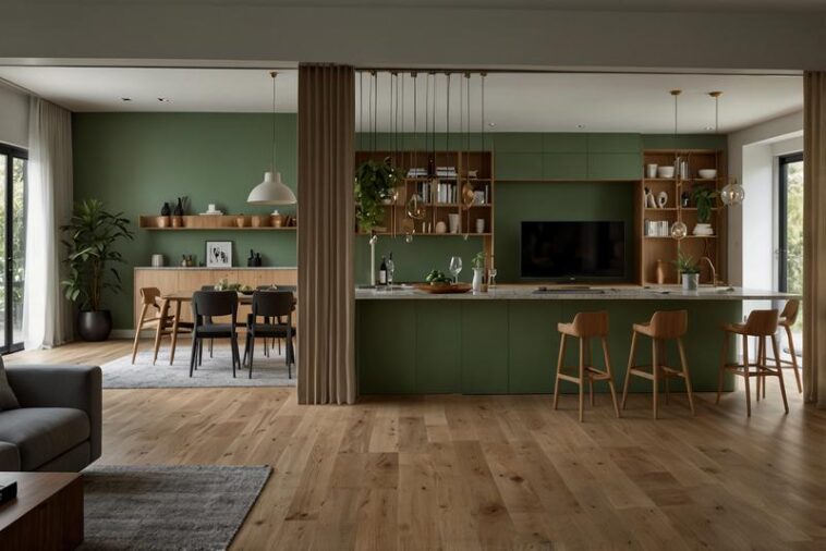 Ein Bodenbelagswechsel zwischen Küche und Wohnraum stellt eine elegante Möglichkeit dar, unterschiedliche Funktionsbereiche optisch voneinander zu trennen, ohne dabei die Offenheit des Grundrisses zu beeinträchtigen. Während in der Küche häufig strapazierfähige, wasserresistente Materialien wie Fliesen oder Vinyl bevorzugt werden, setzt der Wohnbereich meist auf warme und einladende Bodenbeläge wie Parkett oder Laminat. Der Übergang der Materialien kann durch eine klare Kante oder eine sanft verlaufende Übergangsleiste akzentuiert werden, um die einzelnen Bereiche subtil zu gliedern. Ein gut durchdachter Bodenbelagswechsel verbessert nicht nur die Raumwirkung, sondern trägt auch zur funktionalen Differenzierung bei. Dabei sollte das Farbschema und die Materialwahl harmonisch aufeinander abgestimmt sein, um eine visuelle Einheitlichkeit zu schaffen. Zudem unterstützt der Wechsel des Bodenbelags die Zonierung innerhalb des offenen Grundrisses, ohne dass Wände oder Trennwände notwendig werden. So entsteht ein fließender Übergang, der die Offenheit bewahrt und gleichzeitig unterschiedlichen Nutzungen gerecht wird. Der gezielte Einsatz von Bodentexturen und -farben unterstreicht den Charakter der einzelnen Räume und schafft eine wohnliche Atmosphäre, die das Konzept einer offenen Küche stilvoll ergänzt.