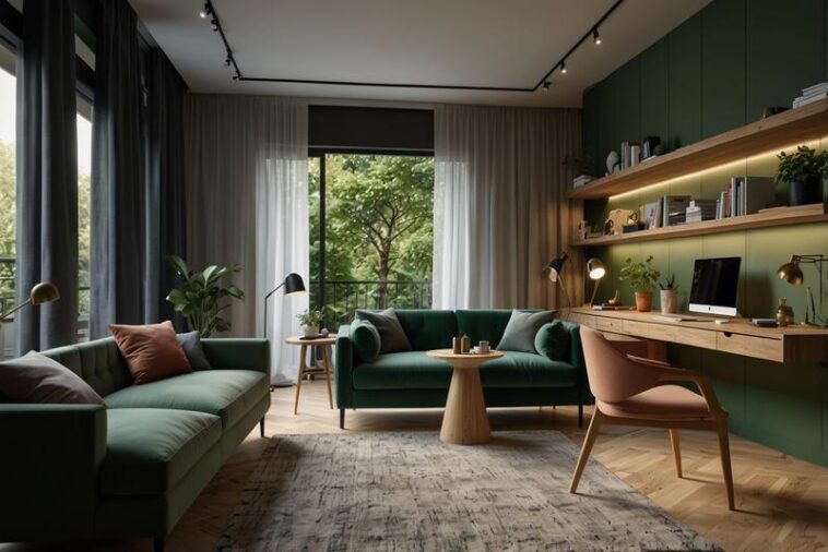 Ein modernes Homeoffice besticht durch Funktionalität und Ergonomie. Ein schlanker Schreibtisch bietet ausreichend Arbeitsfläche, ohne den Raum zu überladen. Besonders in kleineren Wohnungen ist ein platzsparendes Design essenziell, um Bewegungsspielraum zu erhalten. Materialien wie helle Holz- oder Metalloberflächen schaffen eine luftige Atmosphäre und passen zu verschiedenen Einrichtungsstilen.