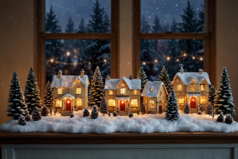 Ein Mini-Weihnachtsdorf auf der Fensterbank schafft eine bezaubernde Atmosphäre und bringt festlichen Charme in jeden Raum. Die kleinen, detailreichen Häuser und Figuren, oft aus Holz, Keramik oder Resin gefertigt, erinnern an verschneite Dörfer und weihnachtliche Traditionen. Beleuchtete Häuschen mit warmem LED-Licht sorgen für ein stimmungsvolles Ambiente in der Dunkelheit und setzen dekorative Akzente. Klassiker wie kleine Tannenbäume, Schneemänner oder Weihnachtsmänner ergänzen das Bild und erzeugen eine einladende Kulisse für die kalte Jahreszeit. Für einen besonders naturnahen Eindruck eignen sich zusätzlich kleine Kunstschneeschichten oder Watte als Schneedecke, die die winterliche Szenerie vervollständigen. Ein Weihnachtsdorf auf der Fensterbank kann vielseitig gestaltet werden und passt sowohl zu klassischer als auch moderner Weihnachtsdekoration. Es lädt ein, kreativ zu werden und verschiedene Materialien, Farben und Lichtquellen zu kombinieren. Mit einem Mini-Weihnachtsdorf wird die Fensterbank zum festlichen Highlight, das sowohl im Wohnzimmer als auch im Flur oder in der Küche Freude und Gemütlichkeit verbreitet.