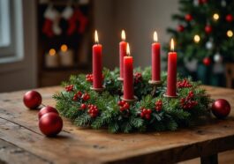 Ein Adventskranz in Weiß und Silber verleiht dem Wohnraum eine besondere Eleganz, die moderne Innenräume ideal unterstreicht. Die Kombination aus weißen Kerzen, silbernen Kugeln und glitzernden Elementen sorgt für einen festlichen Glanz, ohne dabei opulent zu wirken. Materialien wie glänzendes Metall, mattierter Glas- oder Kunstschnee-Effekt harmonieren perfekt mit zarten Tannenzweigen oder weißen Kiefernzweigen. Auch die Integration von dekorativen Silberbändern oder filigranen Anhängern schafft abwechslungsreiche Akzente. Besonders beliebt sind Kränze, die natürliche Elemente mit modernen Komponenten verbinden, etwa weiße Zapfen, silberne Beeren oder schimmernde Schneekristalle. Die Farbpalette in Weiß und Silber vermittelt nicht nur Reinheit und Frische, sondern auch Ruhe und Klarheit, was in hektischen Zeiten zur Besinnlichkeit beiträgt. Dadurch wird der Adventskranz zum stilvollen Mittelpunkt jeder Weihnachtsdekoration und schafft eine harmonische Atmosphäre. Zudem kann der Kranz durch LED-Lichterketten in kühlem Weiß beleuchtet werden, um das Ambiente zu verstärken. Insgesamt vereint die Weihnachtsdeko als Adventskranz Ästhetik und Tradition rund um das Thema Weihnachten auf moderne und zeitgemäße Weise.