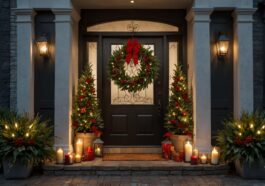 Eine festliche Haustürgestaltung spielt eine zentrale Rolle bei der Schaffung einer einladenden Weihnachtsatmosphäre. Speziell ein weiß-silberner Kranz bringt Eleganz und Stil in die Eingangspartie. Weiße Tannenzweige, kombiniert mit silbernen Akzenten wie glänzenden Kugeln, Zierband oder dezenten Schneeflocken, erzeugen eine harmonische Wirkung, die sich perfekt in moderne Inneneinrichtungen einfügt. Solch ein Kranz lässt sich leicht mit Lichtern ergänzen, um einen warmen, schimmernden Effekt zu erzielen, der insbesondere in der dunklen Jahreszeit für ein stimmungsvolles Ambiente sorgt. Neben dem ästhetischen Aspekt bietet die Kombination aus Weiß und Silber auch eine zeitlose Eleganz, die sowohl minimalistisch als auch luxuriös wirkt. Für kreative Variationen können natürliche Elemente wie Zapfen oder Eukalyptuszweige eingesetzt werden, die ebenfalls mit silberner Sprühfarbe veredelt werden können. Die Verwendung langlebiger Materialien stellt sicher, dass die Weihnachtsdeko auch wetterfest ist und draußen strahlt. Insgesamt verleiht ein weiß-silberner Türkranz dem Eingangsbereich eine edle Note und sorgt für ein modernes, festliches Statement, das Gäste beeindruckt und die Vorfreude auf die Feiertage steigert.