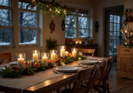 Eine elegante Weihnachtsdeko für den Esstisch setzt auf die harmonische Kombination von weißen Kerzen und silbernem Besteck, die moderne Innenräume stilvoll ergänzt. Weiße Kerzen bringen eine zeitlose Leichtigkeit und wirken gleichzeitig beruhigend, was für eine besinnliche Atmosphäre während der Festtage sorgt. Silbernes Besteck unterstreicht den festlichen Charakter und passt hervorragend zu schimmernden Dekoelementen wie Gläsern, Platztellern oder Streudeko in Metallic-Tönen. Zusammen erzeugen diese Elemente ein stimmiges Gesamtbild, das sowohl minimalistisch als auch edel erscheint. Ergänzend bieten sich Accessoires wie graue Leinenservietten, klare Kristallgläser und dezente Tannenzweige an, die den Tisch natürlich beleben und die weiße-silberne Farbwelt unterstreichen. Besonders reizvoll ist der Kontrast zwischen matten und glänzenden Oberflächen, der der Dekoration Tiefe verleiht. Durch die Konzentration auf Weiß- und Silbertöne wird die Ästhetik modern und edel zugleich, ohne überladen zu wirken. Diese Dekorationsidee schafft eine festliche Stimmung, die authentisch, schlicht und dennoch sehr elegant erscheint – ideal für stilbewusste Gastgeber Weihnachten zu feiern.