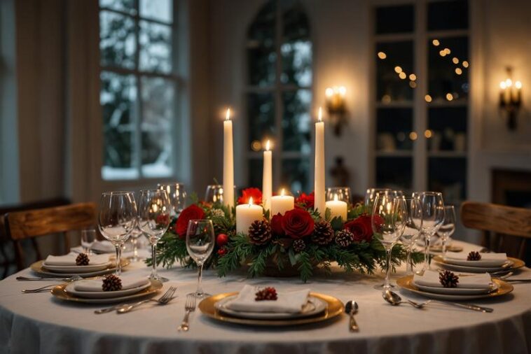 Besondere Highlights setzen dabei natürliche Elemente wie Zapfen oder stabile Beerenzweige, die in die Girlanden eingearbeitet werden können. Insgesamt fördern grüne Girlanden und Eukalyptusläufer eine ausgewogene, organische Dekoration, die das Weihnachtsdinner zu einem stilvollen und einladenden Erlebnis macht.