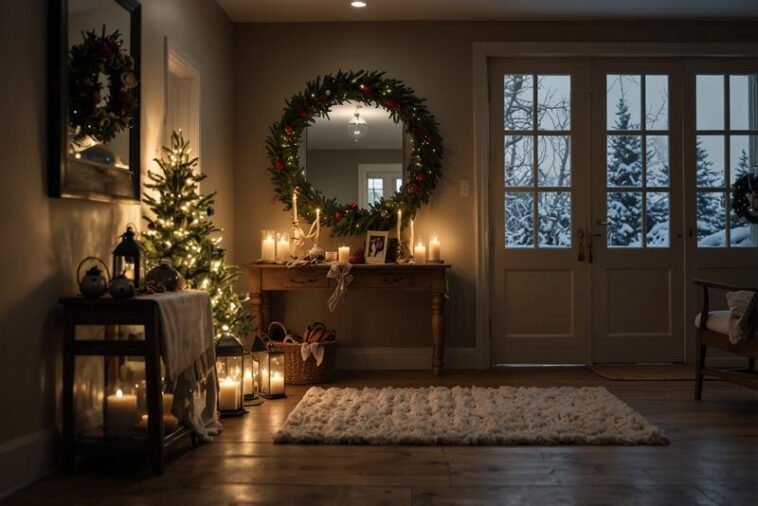 Die festliche Gestaltung des Eingangsbereichs spielt eine zentrale Rolle, um Besucher in der Weihnachtszeit herzlich willkommen zu heißen. Mit liebevoll gestalteten Elementen wie einem Willkommenskranz aus Tannenzweigen, Lichterketten entlang der Garderobe oder Laternen mit LED-Kerzen lässt sich eine warme und einladende Atmosphäre schaffen, die den ersten Eindruck im Zuhause prägt. Natürliche Materialien wie Holzsterne, Tannenzweige und getrocknete Orangen setzen nicht nur optische Akzente, sondern bringen auch Duft und Gemütlichkeit in den Flur. Ergänzend sorgen Adventsteller oder dekorierte Spiegelrahmen für einen festlichen Blickfang, während praktische Bereiche wie Schuhregale oder Schlüsselbretter mit dezenten Dekorationen an Stil und Stimmung gewinnen, ohne ihre Funktion einzubüßen. Auch spezielle Arrangements wie winterliche Türmatten, hängende Dekoelemente oder eine geschmackvoll gestaltete Wandnische verleihen dem Eingangsbereich Persönlichkeit und Saisonflair. Die Kombination aus Licht und natürlichen Stoffen verbindet Ästhetik und Wohlgefühl, schafft Symmetrie und Tiefe und wertet den Raum sichtbar auf. So wird der Flur nicht nur optisch festlich, sondern auch zu einem einladenden Ort, der das Gefühl von Herzlichkeit und Vorfreude auf die Weihnachtszeit verstärkt und Gäste unmittelbar auf die besondere Zeit einstimmt.