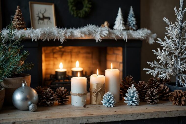 Vintage-Glanz-Weihnachtsdeko am Kamin