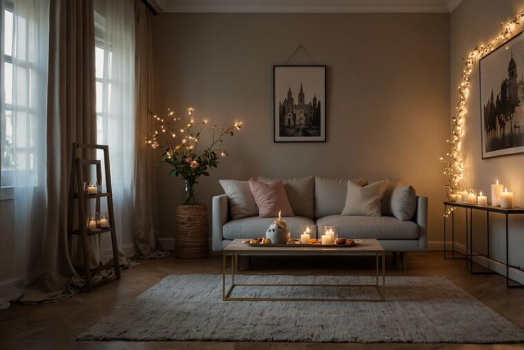 Kerzen sorgen mit ihrem warmen Schein für Gemütlichkeit und festliche Stimmung. Am besten sind Teelichter oder Stumpenkerzen in neutralen Farben wie Weiß, Creme oder zartem Gold geeignet. Sie lassen sich in Kerzenhaltern aus Glas oder Metall arrangieren, um den Look modern und elegant zu gestalten. Dezenter Glanz kann durch den gezielten Einsatz von Accessoires wie kleinen gold- oder silberfarbenen Dekoobjekten, Glasfiguren oder leicht funkelnden Streudekorationen erzielt werden. Dabei ist Zurückhaltung gefragt, damit die Deko nicht überladen wirkt und das Gesamtbild harmonisch bleibt.