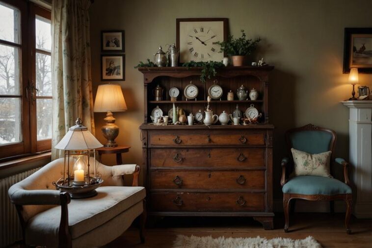 Der Kaminsims bietet eine perfekte Kulisse, um nostalgische Akzente mit Vintage-Deko zu setzen. Alte Uhren, insbesondere antike Stand- oder Pendeluhren, verleihen dem Raum eine besondere Atmosphäre und verbinden Funktionalität mit Geschichte. Die patinierte Oberfläche und der zeitlose Charme vergangener Jahrzehnte bringen Leben und Charakter in jede winterliche Wohnlandschaft. Unterschiedliche Uhrentypen, von klassischen Holzgehäusen bis hin zu kunstvoll verzierten Messingmodellen, bieten vielfältige Gestaltungsmöglichkeiten. Kombiniert mit Kerzenständern, getrockneten Blüten oder kleinen, alten Bücherstapeln entsteht ein harmonisches Arrangement, das nostalgische Wärme ausstrahlt. Neben der rein ästhetischen Wirkung symbolisieren alte Uhren auch den fließenden Zeitgeist und regen zum Innehalten an. Die Integration dieser Schmuckstücke am Kaminsims lädt dazu ein, dem Raum ein Stück Geschichte und einen Hauch von Eleganz zu verleihen – ideal für gemütliche Winterabende im Vintage-Stil.