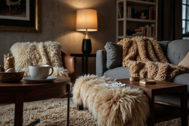Im Schlafzimmer schaffen kuschelige Textilien wie Wolldecken und Fellbettläufer eine warme und einladende Atmosphäre, die besonders in der kalten Jahreszeit für Wohlbefinden sorgt. Wolldecken aus Merinowolle oder Alpakawolle bestechen durch ihre natürliche Wärmeisolierung und Atmungsaktivität, wodurch ein angenehmes Schlafklima gefördert wird. Sie bieten nicht nur Wärme, sondern setzen auch optische Akzente durch ihre texturreiche Oberfläche und oft dezenten Farbnuancen.