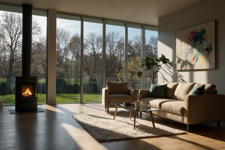 Helle Wohnstube mit moderner Lüftungsanlage und Sonnenlicht